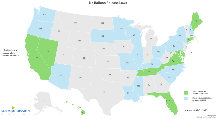 We’re elevating the Legislative page to become a portal and resource for interested people, lobbyists and lawmakers to access the latest information about “No Balloon Release” laws, ordinances, and pending legislation.