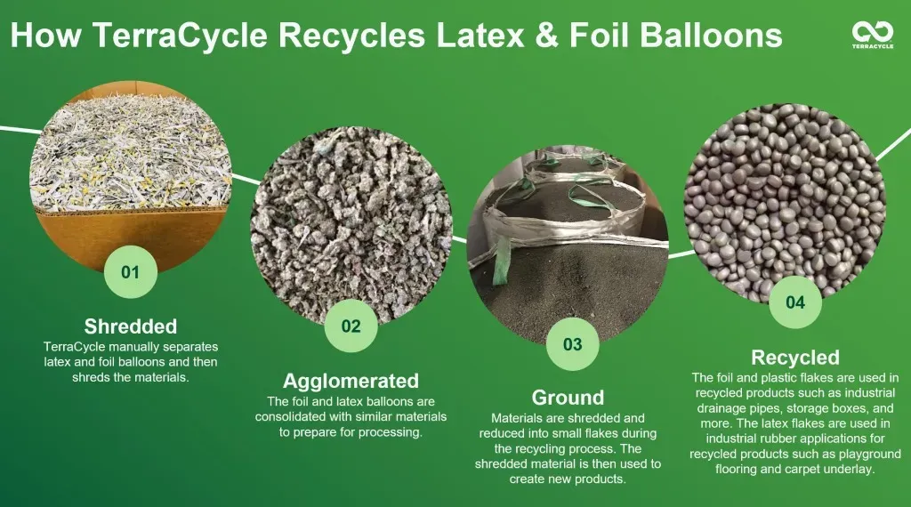 Becoming a TerraCycle affiliate represents a significant step forward in our mission to recycle balloons and prevent them from contributing to plastic waste. TerraCycle, a global leader in the recycling of hard-to-recycle waste, offers innovative and sustainable solutions for products that traditionally end up in landfills. By joining forces, we can now provide a direct way for you to participate in balloon recycling.